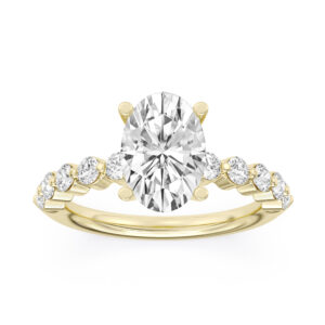 A true symbol of love and elegance, this engagement ring from the Elsie Collection showcases a breathtaking oval lab-grown diamond as its centerpiece. Encased in a shimmering halo of pavé-set diamonds, this piece radiates brilliance from every angle.